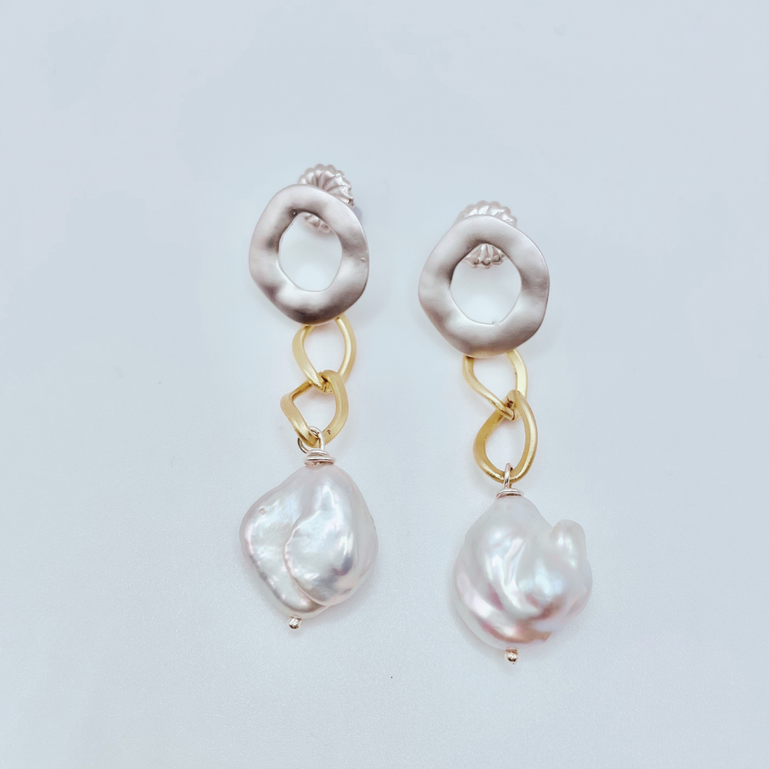 Elevate your jewelry collection with these striking Baroque Fireball Keshi Pearl Drop Earrings. Featuring lustrous...