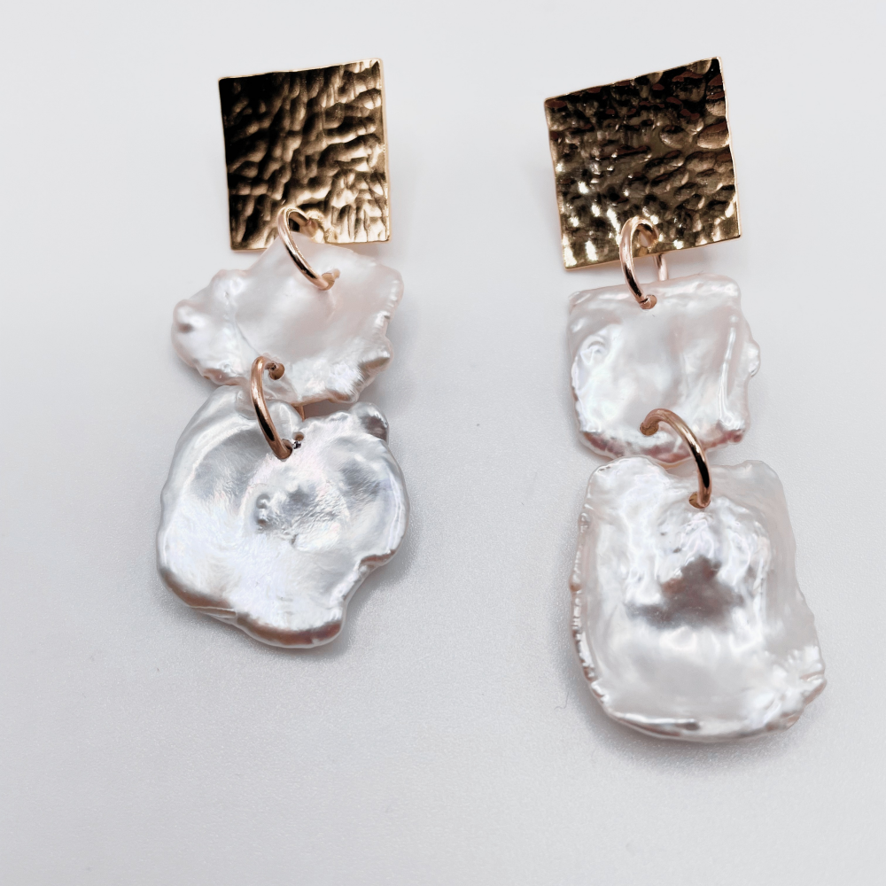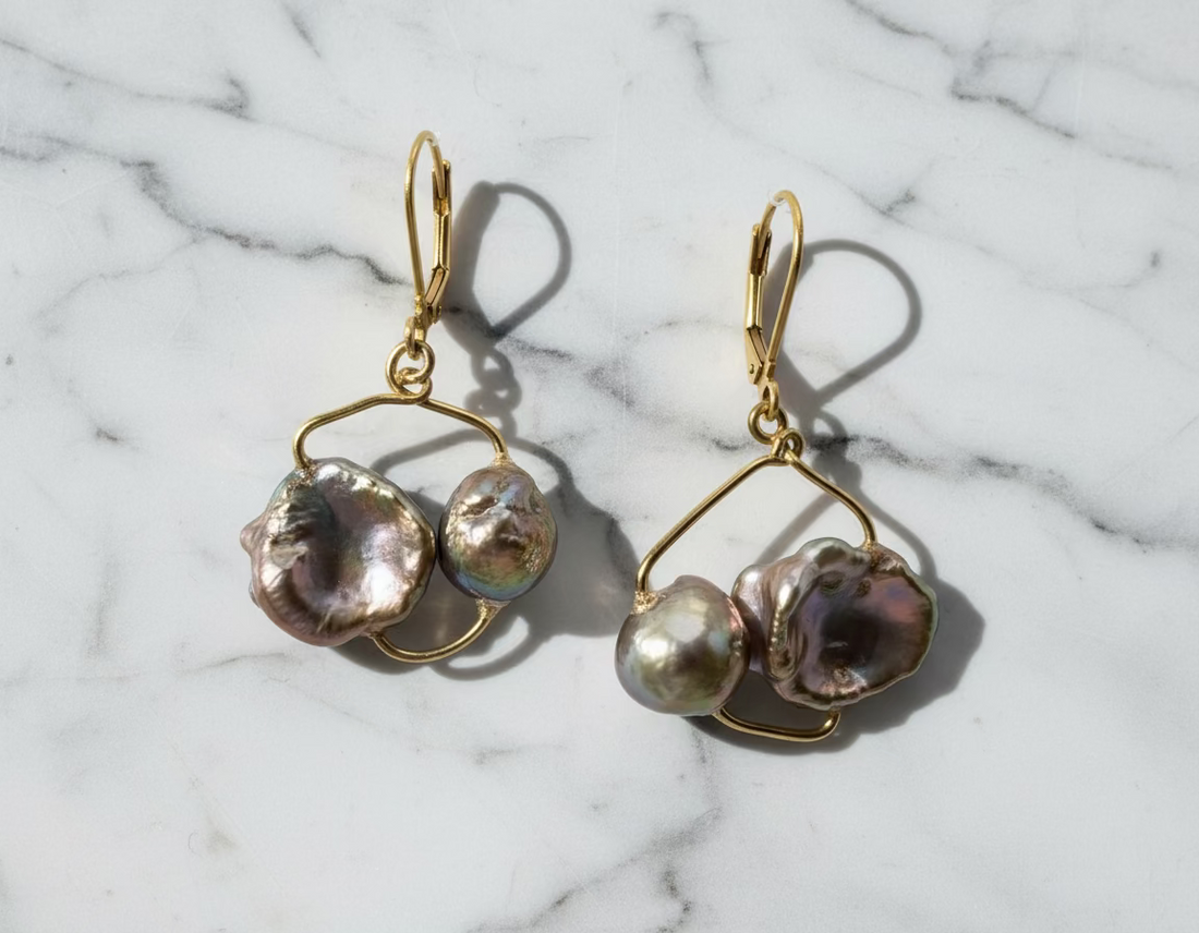 Elevate your jewelry collection with these striking Baroque Fireball Keshi Pearl Drop Earrings. Featuring lustrous...