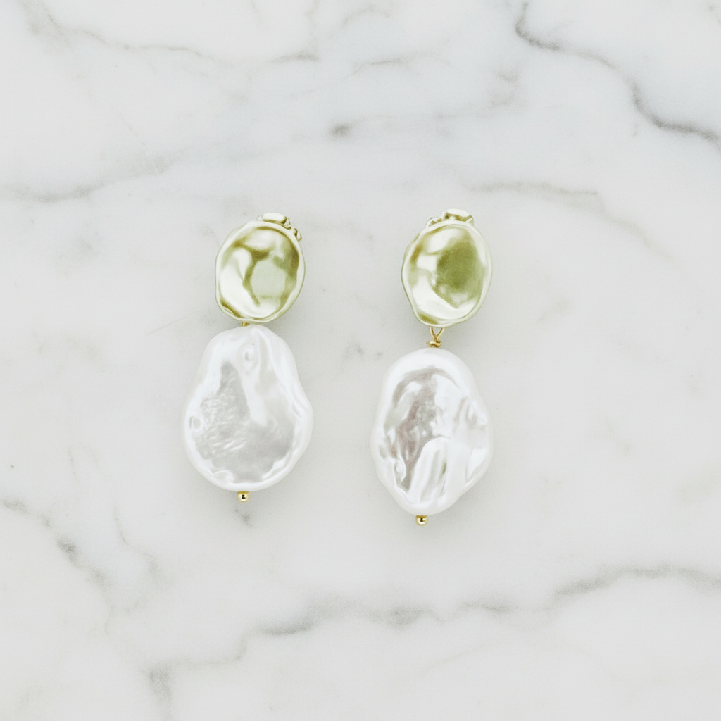 Sophistication in the shape of a circle - these baroque drop earrings are the perfect accessory to make you feel golden! Featuring a round gold plated post and classic 14mm-15mm white baroque pearl dangling from it, you'll look divine!